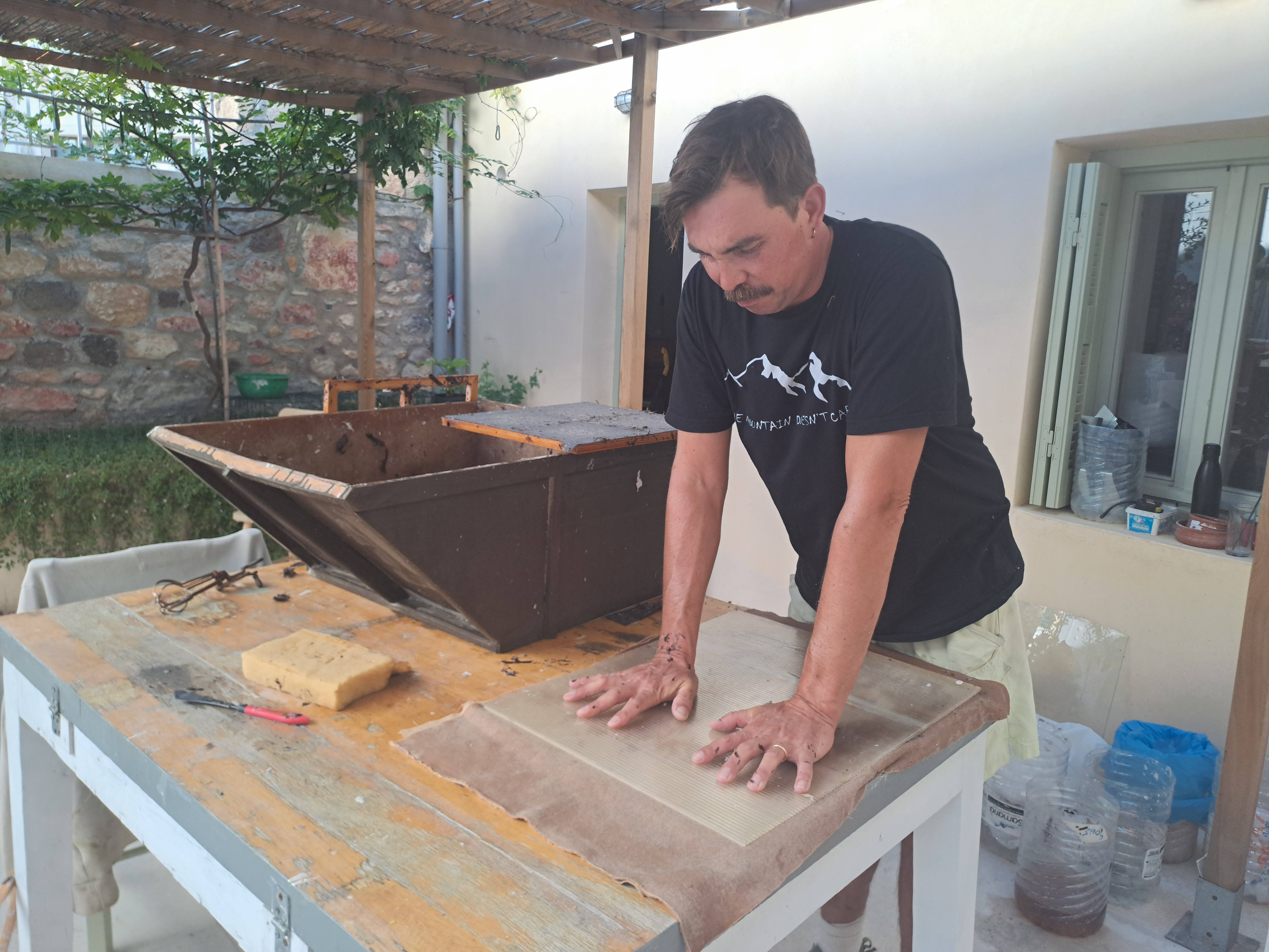 Χρησιμοποιήσαμε αυτό το χαρτί για να φτιάξουμε θήκες φυλλαδίων για την έκθεση Be Water, My Friend και ο Paul χρησιμοποίησε επίσης το χαρτί για να δημιουργήσει ένα νέο έργο Mandala με τίτλο Poseidon, το οποίο παρουσίασε σε μια πρόσφατη έκθεση στην Αίγινα.